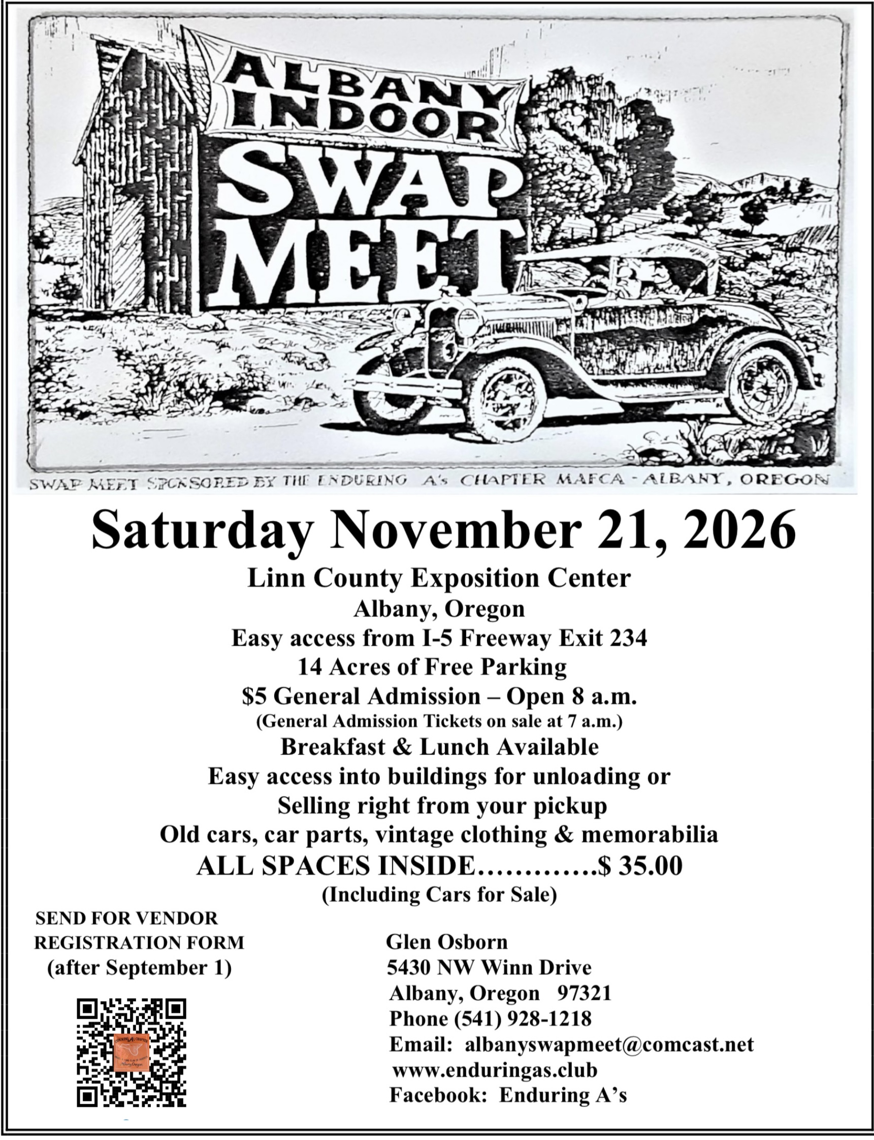 January 24-25 -Turlock California The Modesto Area A's will hold their 59th Annual Swap Meet from 7:00 a.m. to 5:00 p.m. Saturday and 7:00am to 3:00 p.m. Sunday at the Stanislaus County Fairgrounds. This event has grown from a small gathering to more than 900 vendors and 15,000 attendees. Vendors showcase cars built prior to […]
