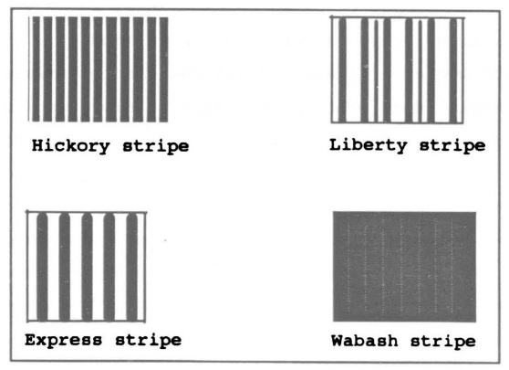 The names Wabash stripe and Express stripe were used in 1914, but Wabash stripe was not found in other references, as the Express stripe was. The latter two names evoke thoughts of railroads such as the Wabash Cannonball and the many “express” lines that were developing in the early 1900’s.